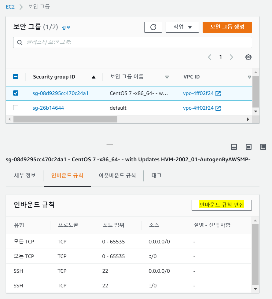인바운드 규칙을 편집하자.