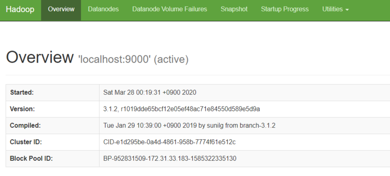 퍼블릭ip:9870 을 통해 Hadoop Web Interface에 접속한다.