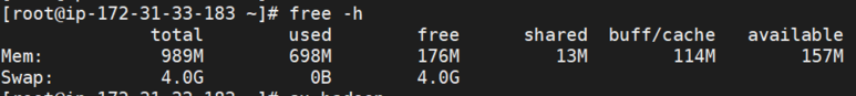 free -h 로 메모리가 증가되었는지 확인해보자.