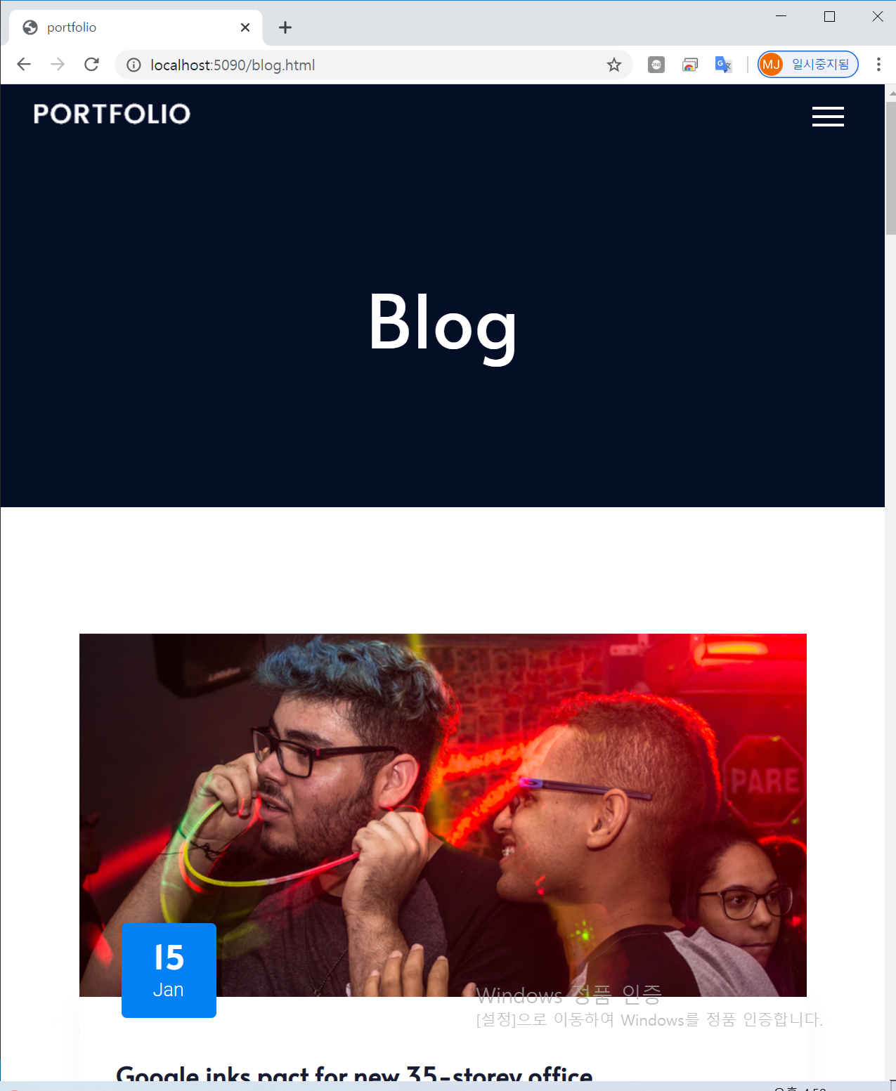 Google등 검색 포털에서 웹 템플릿을 검색하여 가져옵니다.