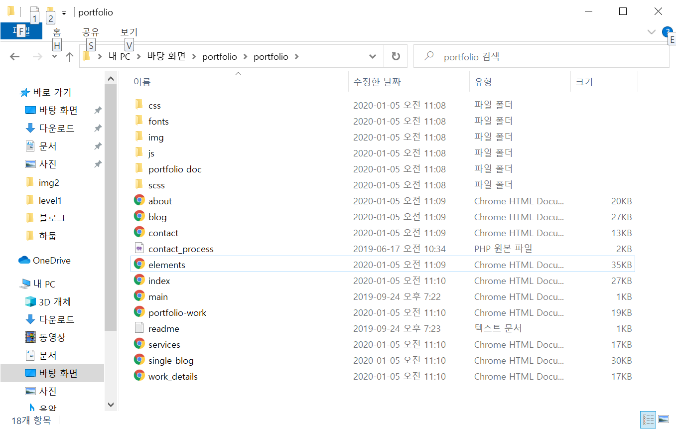 압축을 풀면 아래와 같이 html화면과 css 파일 등이 보입니다.
