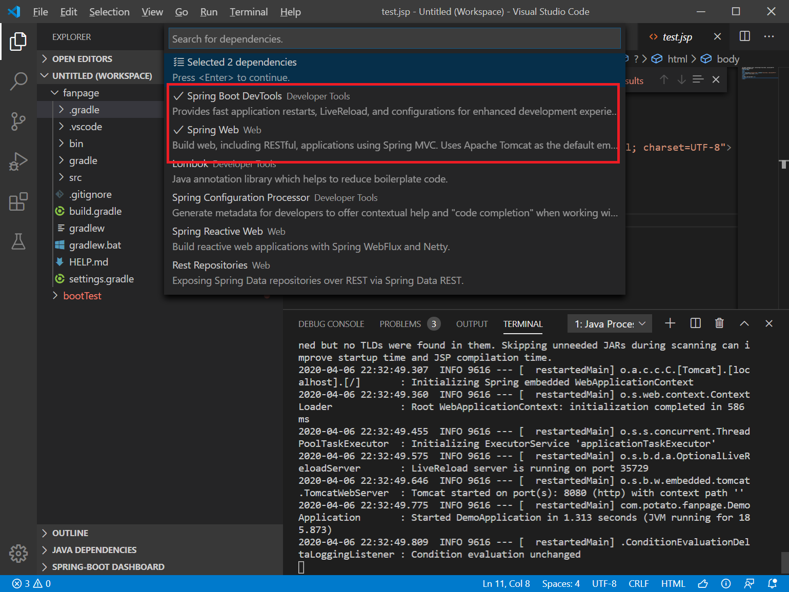 | [웹사이트 제작] VSCode + Spring Boot + Gradle 프로젝트 만들기(2) - jsp, controller 세팅 및 연결하기 (0) | 2020.04.06 |