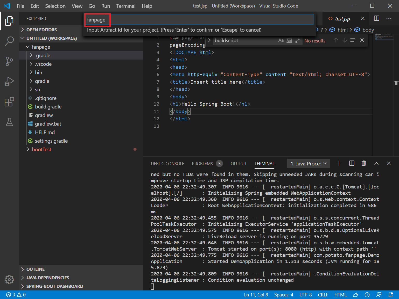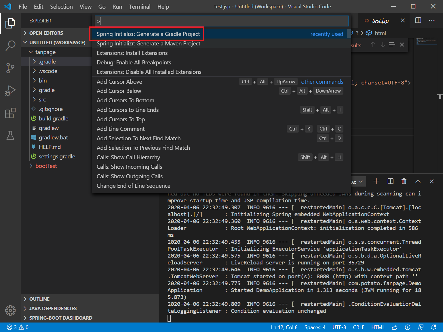 | [웹사이트 제작] VSCode + Spring Boot + Gradle 프로젝트 만들기(2) - 웹 템플릿 이용하여 jsp 파일에 적용하기 (0) | 2020.04.06 |