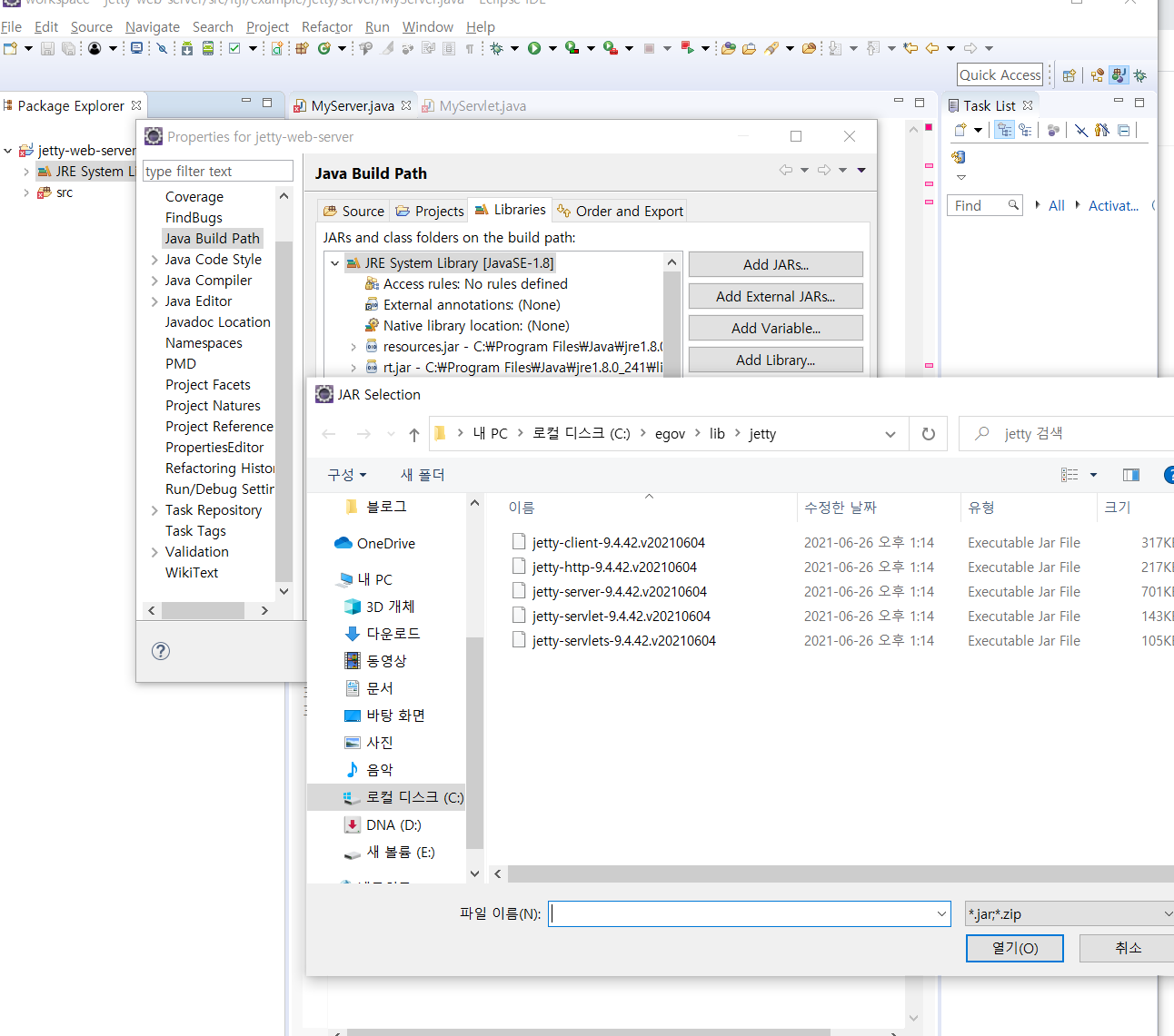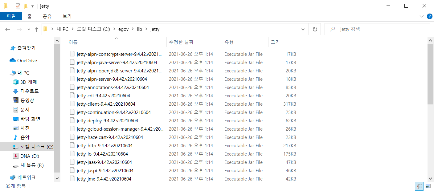 필요한 jar 파일만 옮겨주어도 된다. 저는 모든 jetty*를 옮겨두었습니다.
